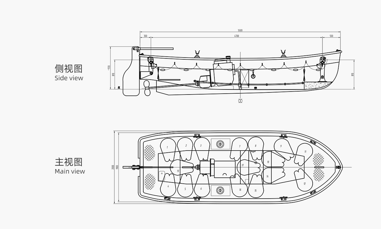 本艇的設(shè)計、制造和試驗完全符合MSC.226(82)、MSC.274(85)、MSC.321(89)和MSC.323(89)修正的MSC.81(70)《經(jīng)修正的就生設(shè)備試驗建議》第1部分;1974年國際海上人命安全公約及其修正案第Ⅲ章第21、31、34條;經(jīng)MSC.218(82)、MSC.272(85)、MSC.320(89)修正的MSC.48(66)《國際救生設(shè)備規(guī)則》第Ⅴ章的要求; 艇體為阻燃型玻璃鋼;供人員行走的表面均為防滑面;內(nèi)殼與外殼的聚氨酯泡沫給救助艇提供足夠的浮力。如果在水線下面的船體有損壞,浮體仍可提供足夠的浮力使艇在安全水平面上漂浮。救助艇兩側(cè)設(shè)有鋼性扶手以便乘員上下,自滔式甲板確保進入艇內(nèi)的海水快速排放;艇上裝有手搖泵,用于排除艇內(nèi)積水;艇上裝有不銹鋼吊鉤系統(tǒng),采用吊艇索下放或回收;救助艇配備自扶正空氣箱,滿足客貨滾裝輪的使用要求;本艇可滿載全速航行大于4小時,航速可達到6節(jié)以上。