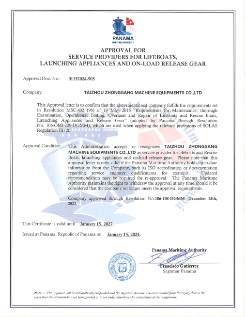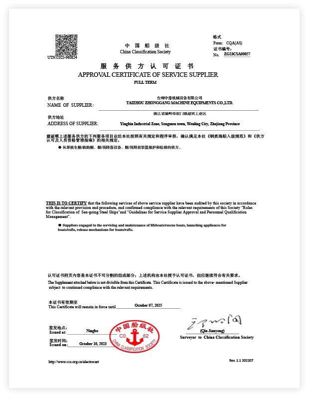 我公司擁有中國船級社的服務(wù)供應(yīng)商認(rèn)可證書和巴拿馬船級社的服務(wù)供應(yīng)商認(rèn)可證書,可每五年在全球范圍內(nèi)為您的設(shè)備提供年檢和五年專項(xiàng)檢驗(yàn)。主要檢查項(xiàng)目如下: